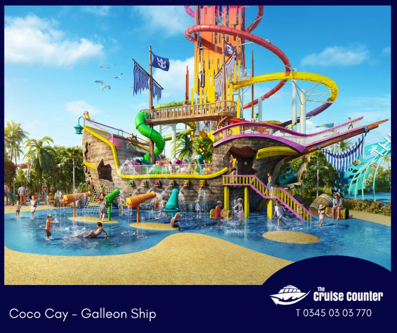 Setting the stage for the perfect day is the upbeat, colorful and dynamic arrivals plaza, visible to guests as soon as they step ashore Perfect Day at CocoCay. Vacationers will be able to jam out to a welcoming party of live music or brave a zip line ride soaring across the harbor; get soaked by more than 30 water cannons on a shipwrecked Galleon or by the surprising spout of Sprayaway Geyser, spraying water 82 feet in the air. Royal Caribbean’s largest Splashaway Bay will give kids even more buckets of fun thanks to fountains, pools, sprinklers, geysers, water cannons and whirlpools – plus five kid-size waterslides and two massive drench buckets.